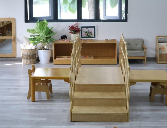 🌳 Môi trường và mọi thứ trong Ngôi nhà của Trẻ đã được chuẩn bị rất kỹ lưỡng để hỗ trợ, nuôi dưỡng, cung cấp hoạt động cá nhân, bảo vệ quá trình phát triển tự nhiên của trẻ. Những ngôi nhà, nội thất, dụng cụ và đồ dùng cần thiết được thiết kế phù hợp với độ tuổi và kích thước của trẻ em. Các đồ dùng và học cụ được tạo ra một cách tỉ mỉ dựa trên nền tảng kiến thức về nhu cầu phát triển của các giai đoạn khác nhau trong thời kỳ thơ ấu của trẻ.