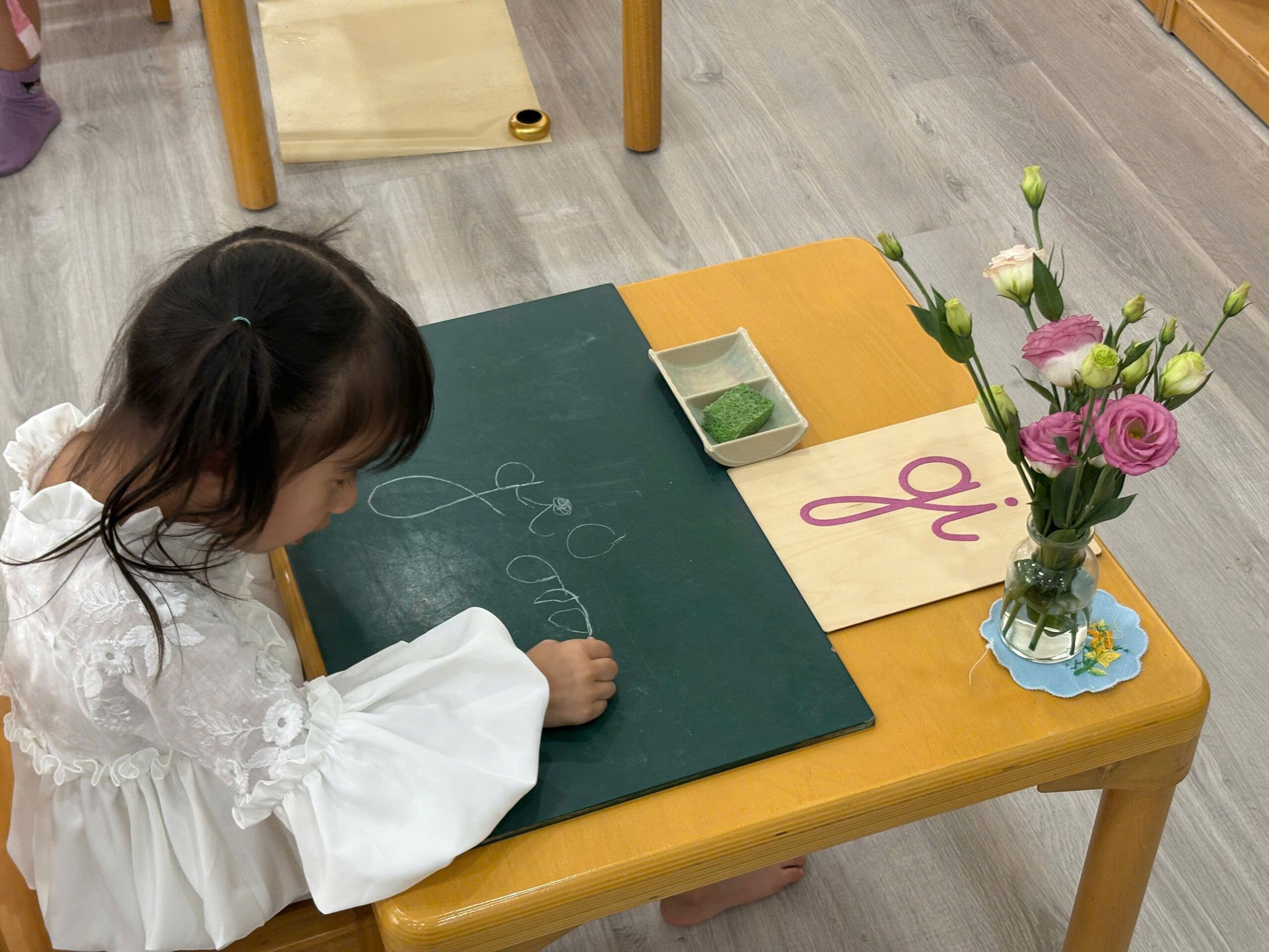 - Điểm khác biệt về học ngôn ngữ trong Montessori chính là trẻ sẽ làm quen với viết trước rồi mới đọc. Các hoạt động hỗ trợ trẻ học viết bao gồm tô màu, vẽ trên cát, lắp ráp các chữ cái bằng gỗ có thể tách rời và ghép tùy ý, cảm nhận chữ viết qua các đầu ngón tay trên nền giấy nhám,…đều có tác dụng trong việc kích thích tư duy khám phá những điều mới lạ của trẻ.