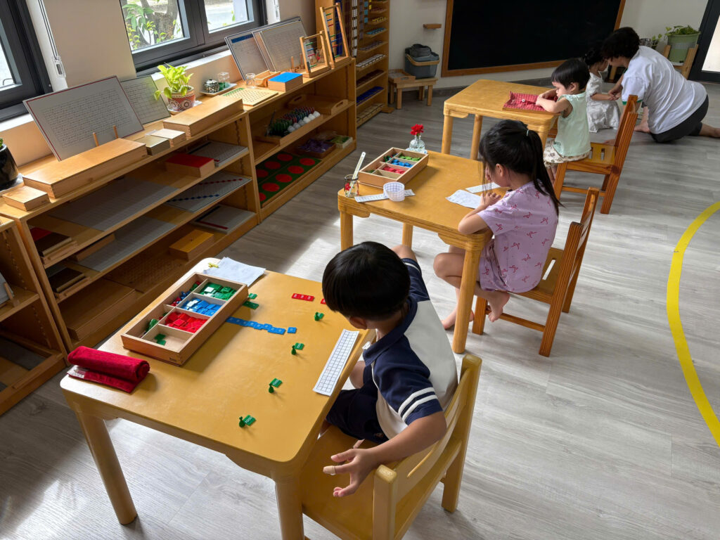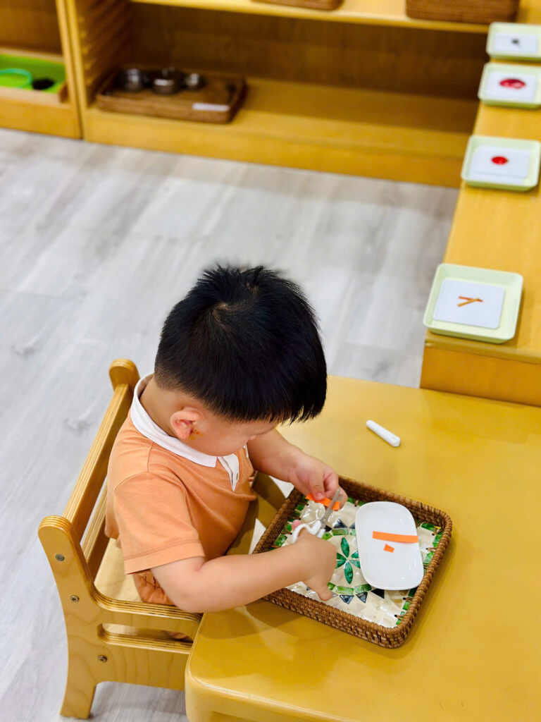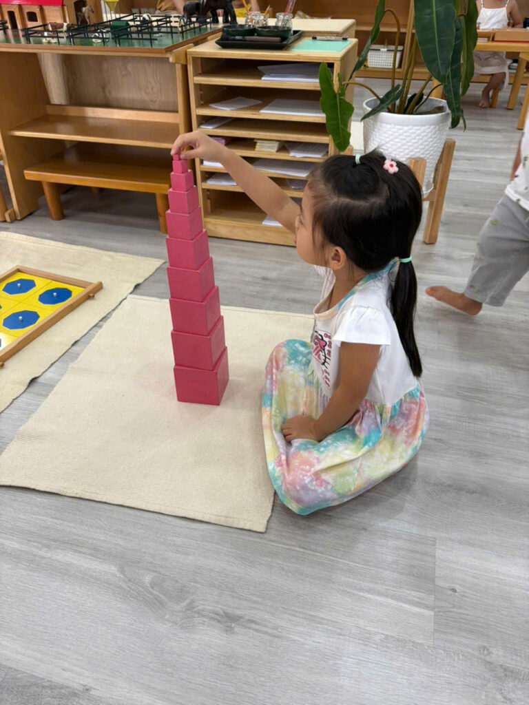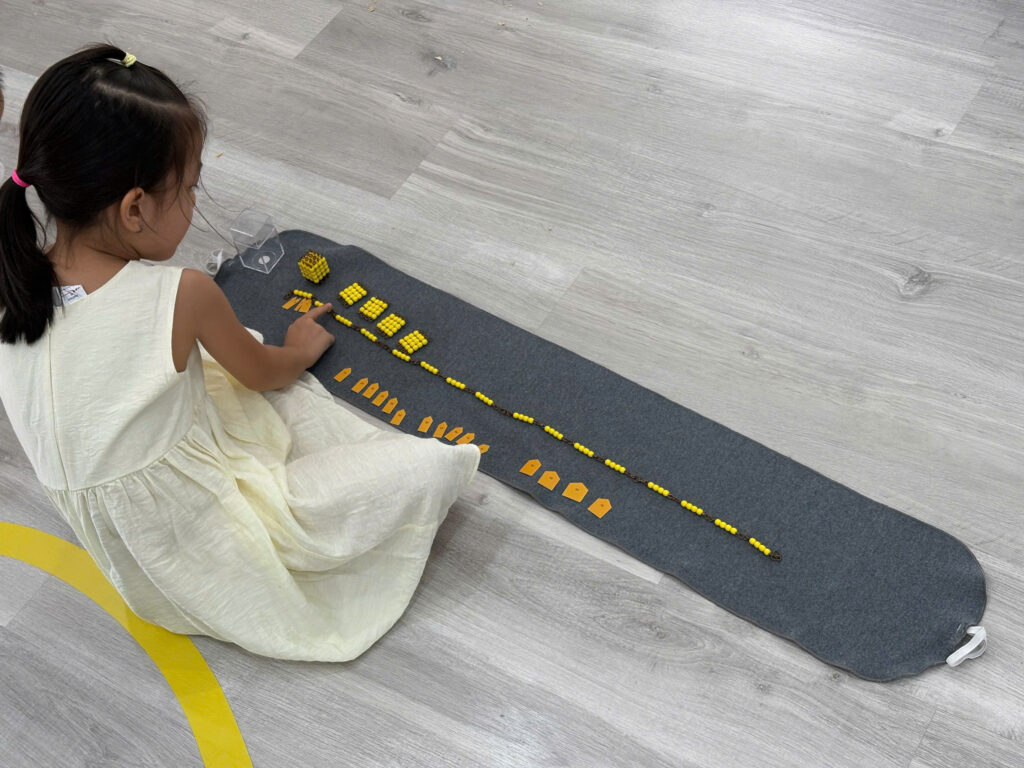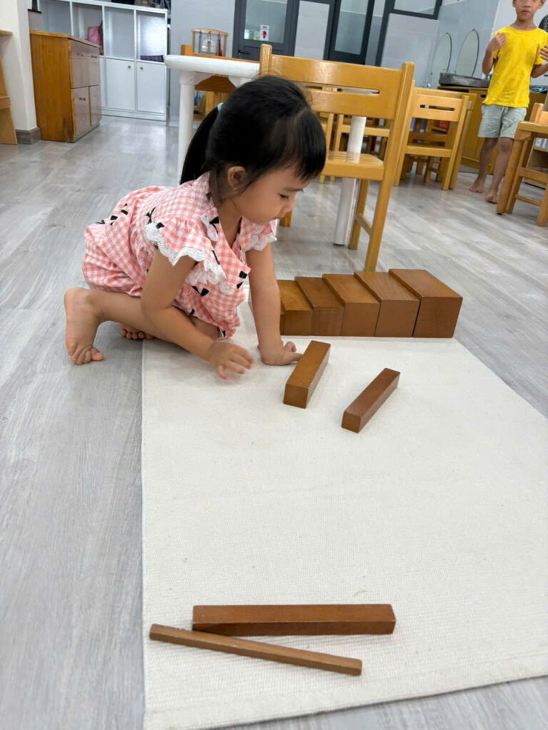 💎🧮📏Lĩnh vực toán học là lĩnh vực thứ 4 trong môi trường Vườn Xanh Montessori. Bà Maria Montessori rất quan tâm đến qua trình tiếp thu của trẻ, bà muốn quan sát cách trẻ tiếp thu qua các giai đoạn phát triển và bà nhận ra hình mẫu phát triển toán học của trẻ. Đầu tiên là sự chuẩn bị gián tiếp, trí tuệ toán học của trẻ phải được phát triển dần dần, cần được nuôi dưỡng một cách gián tiếp. Sự chuẩn bị gián tiếp thông qua tất cả các hoạt động trong lĩnh vực đời sống thường nhật và cảm quan cùng với ngôn ngữ chuẩn xác đã giúp trẻ thu nhận các kiến thức vào trong vô thức và đến khoảnh khắc trẻ nói “Con đã biết nó là cái gì rồi”, khoảnh khắc này diễn ra khi trẻ bắt đầu biết cách áp dụng các kiến thức. Trí tuệ toán học phải trải qua một quá trình phát triển rất dài. Và đây là lĩnh vực cuối cùng hướng dẫn cho trẻ trong ngôi nhà trẻ thơ Vườn Xanh Montessori.