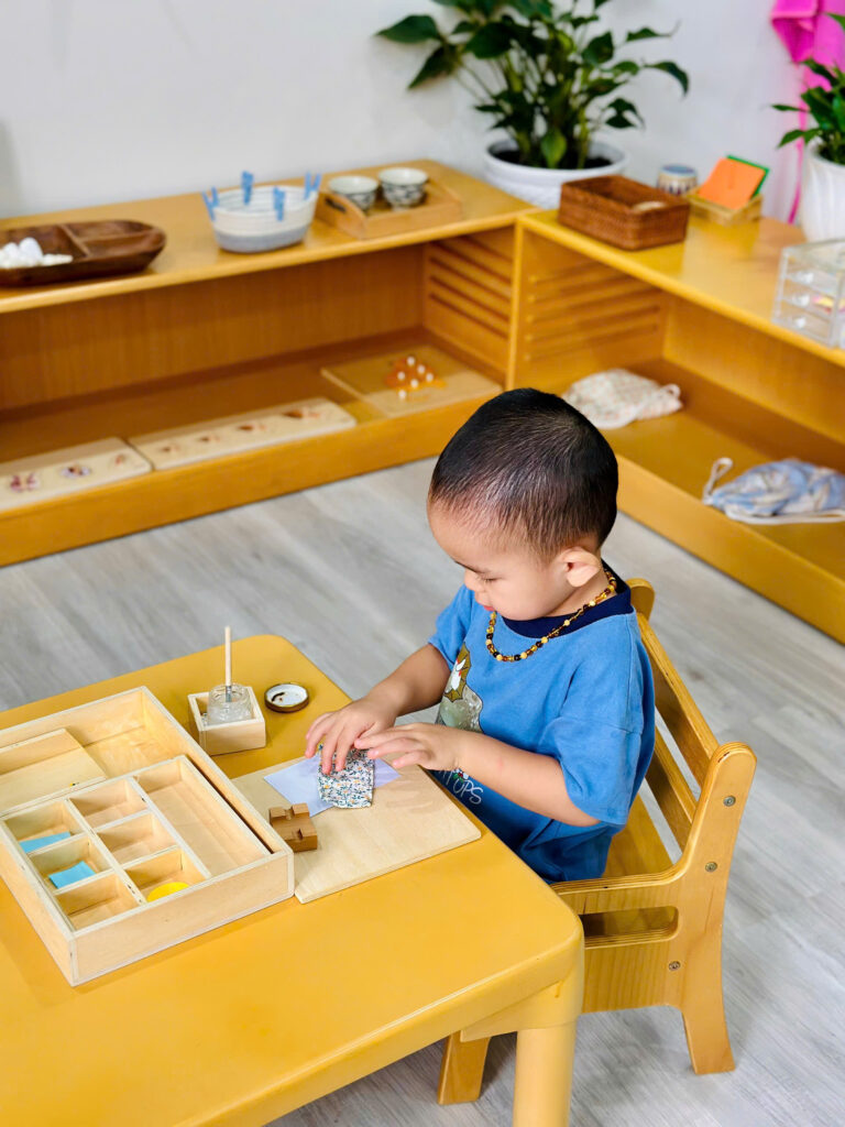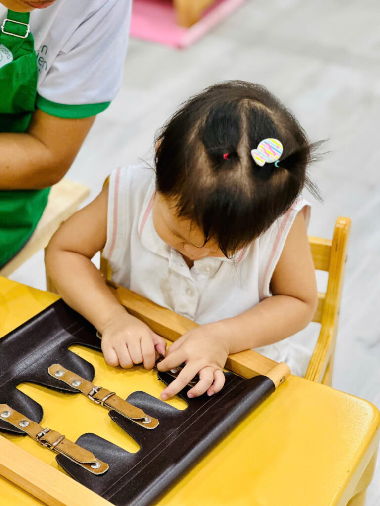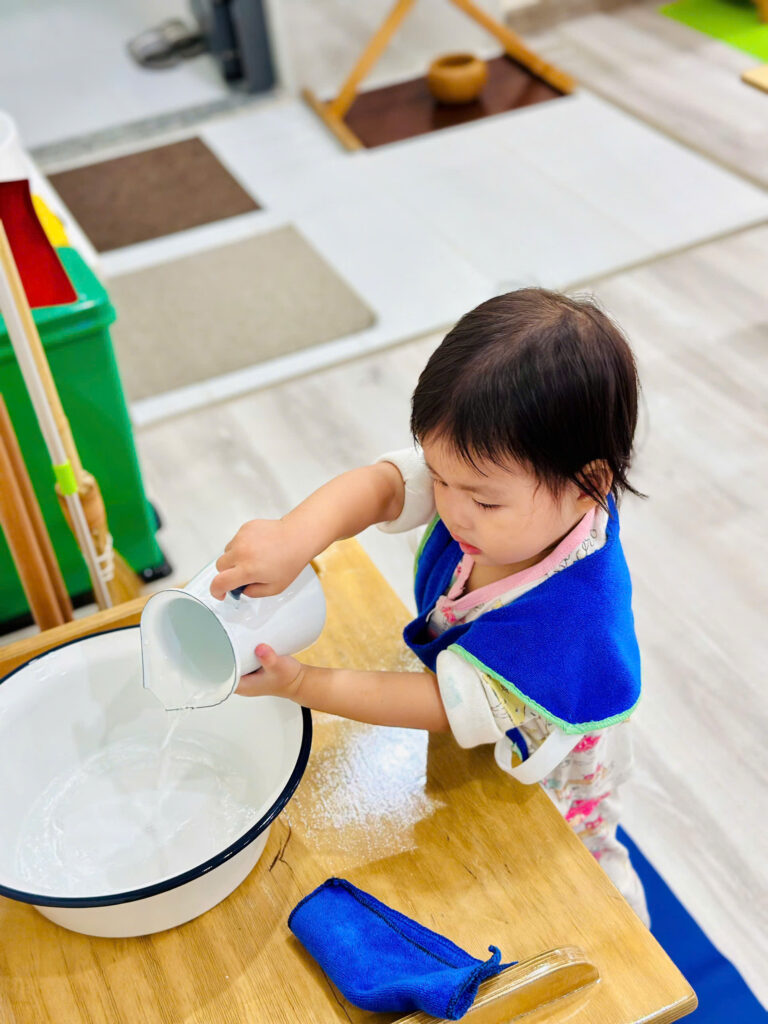 🧹🧺🪥🚪Đời sống thường nhật là một trong 4 lĩnh vực được chuẩn bị trong môi trường của chúng tôi – Vườn Xanh Montessori. Các hoạt động của đời sống thường nhật tái hiện lại những công việc đơn giản của cuộc sống tại nhà như: quét nhà, lau bụi, giặt khăn, rửa chén, cắm hoa… những hoạt động đời thường có mục đích này được sắp xếp từ đơn giản đến phức tạp, được chia thành nhiều cấp độ và bao gồm nhiều bước nhỏ, giúp trẻ thích nghi với cộng đồng, học cách tự chủ và bắt đầu nhìn nhận mình là một phần đóng góp cho xã hội, giúp hình thành kỹ năng sống, phát triển sự tập trung chú ý, phát triển ý chí, giúp trẻ độc lập chức năng sống trong giai đoạn phát triển thứ nhất từ 0-6 tuổi.